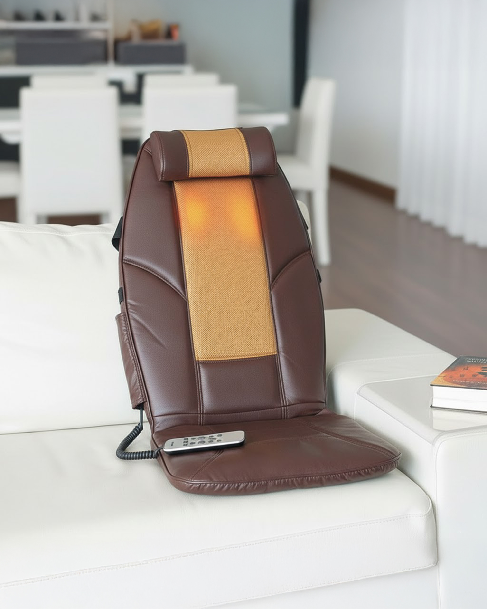 Leve, dobrável e fácil de transportar, este encosto pode ser usado em diferentes contextos, desde o sofá da sala à cadeira do escritório ou ao banco do carro. As alças ajustáveis facilitam a fixação, enquanto o comando de controlo permite regular as funções de forma prática e intuitiva. É uma excelente opção para quem passa muitas horas sentado, sente tensão nas costas ou simplesmente quer integrar momentos de relaxamento na rotina diária.