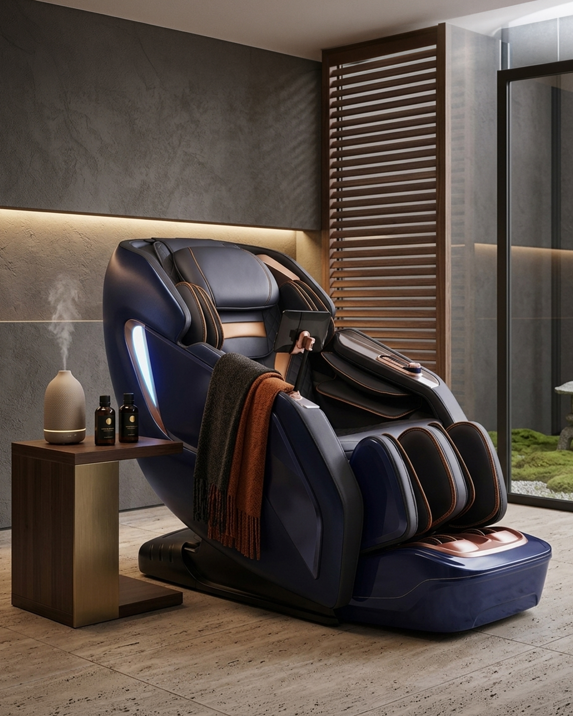 Além da componente terapêutica e de conforto, esta poltrona integra funcionalidades tecnológicas que reforçam a experiência de utilização. Inclui controlador LCD, deteção inteligente do corpo para melhor adaptação da massagem e sistema HiFi Bluetooth, permitindo ouvir música durante a sessão. O revestimento em pele sintética PU e a proposta de uso para casa, escritório, hotel e salão reforçam o posicionamento deste modelo como uma solução versátil e premium.